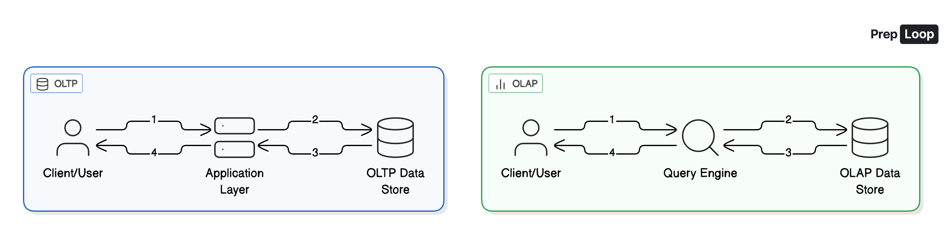 Learn more in-depth about OLTP vs OLAP on PrepLoop.io